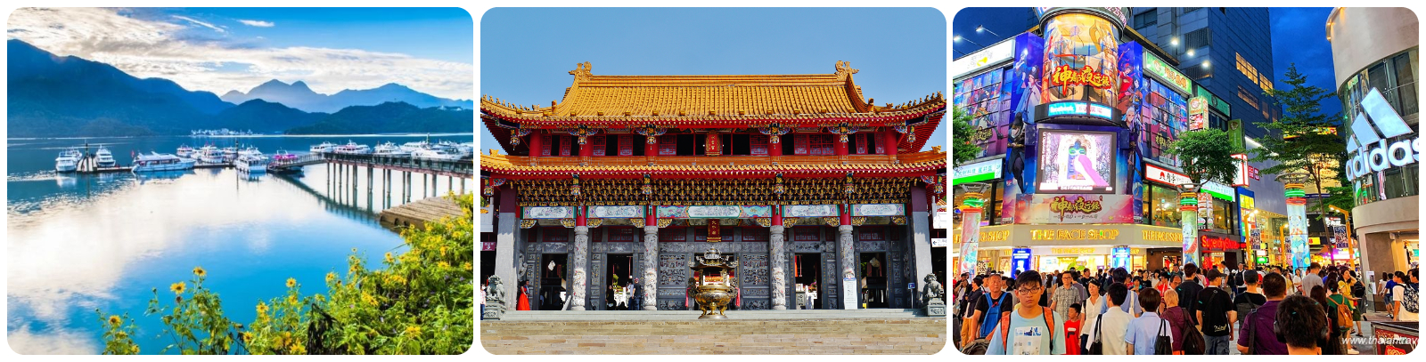 - "Nhật Nguyệt Đàm" - Thuộc địa phận xã Yuchi huyện Nantou của miền Trung Đài Loan, Nhật Nguyệt Đàm là hồ nước tự nhiên lớn nhất vùng lãnh thổ này, Nơi đây cảnh sông nước hữu tình, Bốn bề hồ được bao bọc bởi núi non điệp trùng, đem lại cảnh đẹp hùng vĩ và mơ màng cho Nhật Nguyệt, từng là điểm nghỉ dưỡng ưng ý nhất của ông Tưởng Giới Thạch.