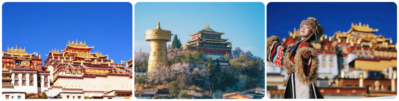 Tùng Tán Lâm Tự – nơi thờ tự Phật giáo dòng Mật Tông Tây Tạng, nơi đây được coi là hình ảnh thu nhỏ của Cung điện Potala (Tây Tạng) nằm trên độ cao 3200m.Nổi bật với những mái nhọn vàng rực rỡ là một ngôi đền lớn nhất Vân Nam, nơi tập trung những nét văn hóa tiêu biểu của người Tạng, được xây dựng từ năm 1679 bởi vị Lạt ma thứ 5, hiện vẫn được bảo tồn nguyên vẹn.