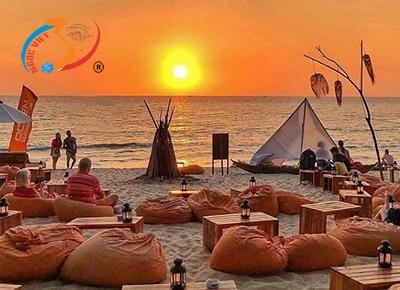 Đây được xem là một trong những địa điểm ngắm hoàng hôn đẹp nhất được rất nhiều du khách yêu thích. Địa điểm này cực chill cho các tín đồ yêu thích sống ảo với concept chủ đạo là những chiếc gối nằm lười màu vô cùng cam độc đáo trên bãi cát dài. Tuy nhiên, quán này không quá lớn nên nếu muốn tìm được góc ngắm hoàng hôn Phú Quốc đúng chuẩn và đẹp nhất thì bạn nên ghé sớm để chọn cho mình được một chỗ ngồi có view đẹp nhất nhé!