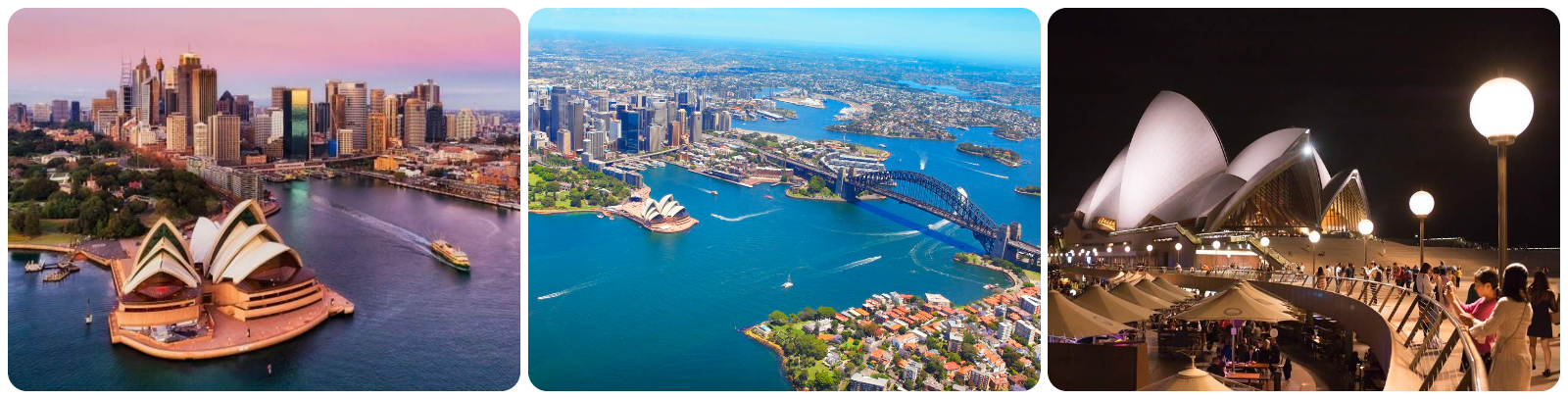 - Nhà Hát Con Sò (Sydney Opera House): Với kiến trúc cực kỳ ấn tượng và nổi tiếng của Sydney với ba mặt hướng ra biển (chụp hình bên ngoài).