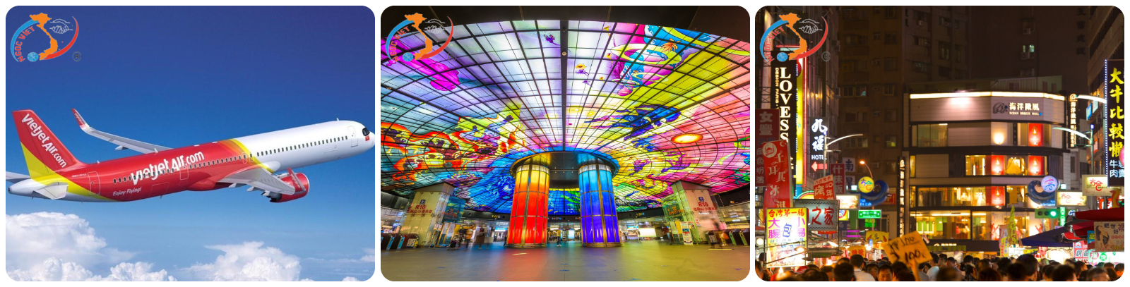 - Chương trình đặc sắc nhất thị trường, tham quan trọn vẹn những điểm đến nổi tiếng nhất Làng cổ Thập Phần, Dã liễu, Tòa tháp Taipei 101, Phật Quang Sơn Tự, Dương Minh SơnHãng thẳng hàng không Vietjet Air (không nghỉ đêm trên máy bay).