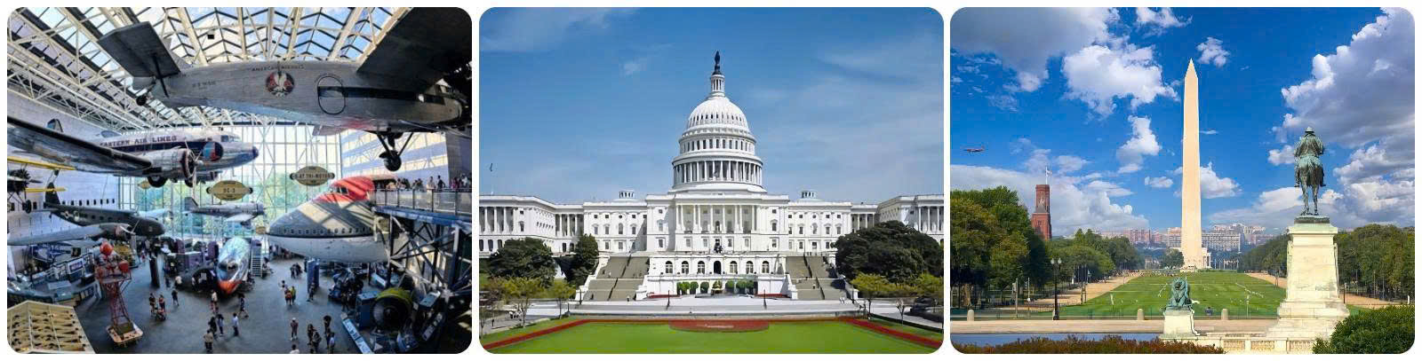 - Bảo tàng Hàng Không và Không Gian Hoa Kỳ - Nơi ghi lại lịch sử phát triển của ngành hàng không, trưng bày các mẫu máy bay chiến đấu, máy bay dân dụng theo trình tự phát triển. Tại đây Quý khách sẽ đi qua từng giai đoạn phát triển của ngành hàng không vũ trụ của Hoa Kỳ cũng như của thế giới.