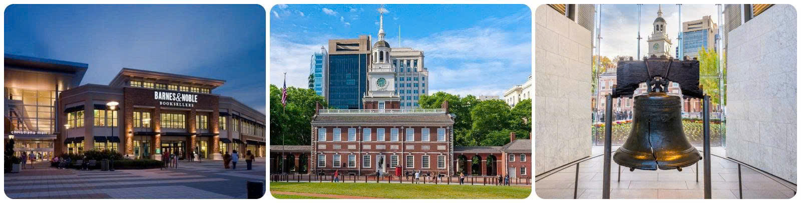 - Trên đường đi đoàn dừng chân tại Christiana Mall tại Newark - thuộc tiểu bang Delaware - đây là 1 trong 4 tiểu bang miễn thuế của Hoa Kỳ. Lưu ý: Chương trình này sẽ chỉ thực hiện được nếu thời gian cho phép và theo sự sắp xếp của trưởng đoàn mà không ảnh hưởng đến thời gian tham quan của chương trình chính.