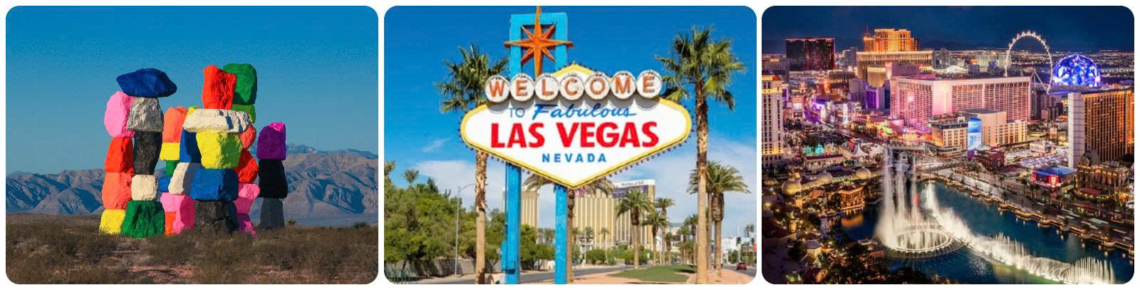 - Seven Magic Mountain với tên gọi công viên đá 7 màu là một tác phẩm nghệ thuật sắp đặt vô cùng độc đáo tọa lạc ngay bên cạnh xa lộ Interstate, thuộc khu vực phía Nam của Las Vegas.