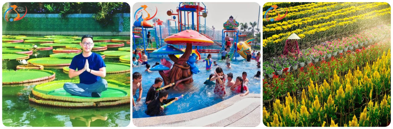 - Làng hoa Sa Đéc – Chiêm ngưỡng hàng trăm loài hoa với đủ màu sặc sỡ giữa tiết trời mùa xuân: hoa mai, cúc, mào gà, thược dược…