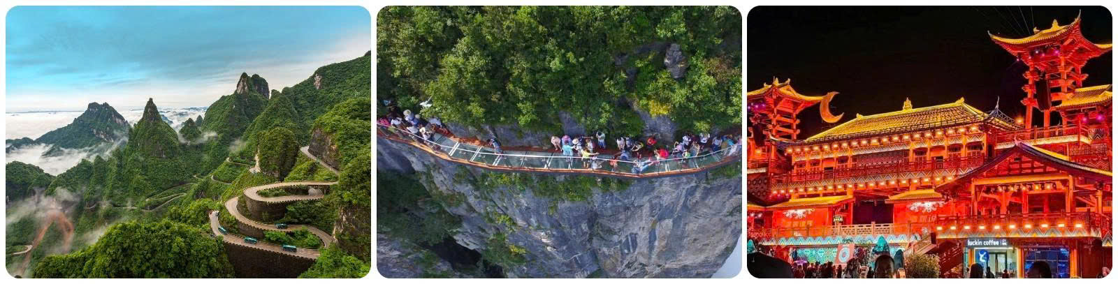 - Thiên Môn Sơn - Ngọn núi rất nổi tiếng với con đường trên trời và tuyến ccáp treo dài nhất tại một ngọn núi cao nhất trên thế giới.