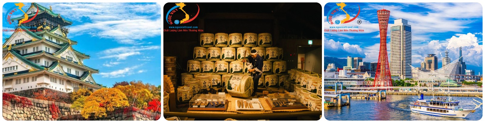 • Thành cổ Osaka (bên ngoài) toà thành cổ nổi tiếng bậc nhất Nhật Bản với những chi tiết mạ vàng và màu ngói xanh ngọc. Đến đây bên cạnh việc thưởng ngoạn quanh lâu đài, du khách còn có thể nghe giới thiệu và ngắm nhìn những trang phục võ sĩ còn lưu lại từ thời Edo