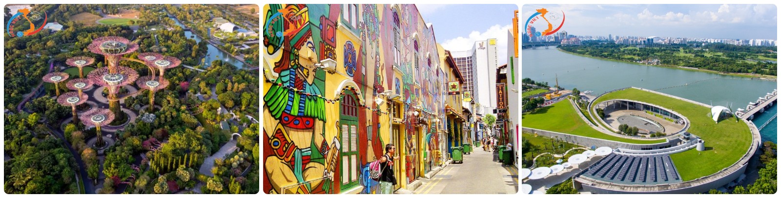 - Kỳ quan Gardens by the Bay (Những khu vườn bên Vịnh) đây là khu vườn nhân tạo rộng hơn 100ha, có hơn 250.000 loài thực vật quý hiếm, với các Siêu cây khổng lồ lấy năng lượng mặt trời vào ban ngày và tỏa sáng vào ban đêm. Từ đây Quý khách có thể chụp hình toàn cảnh “Chiếc du thuyền” nằm ở độ cao 200m trên đỉnh của ba tòa nhà khách sạn Marina Bay Sands